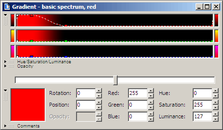 Instead of a prism, I'm going to use separate Ultra Fractal layers to spread out the light coming from the pixels in the monitor. In theory, there are an infinite number of different wavelengths, and an infinite number of different colors. However, you only need to worry about three: the primary colors. To make a full spectrum takes three layers, one for each primary.